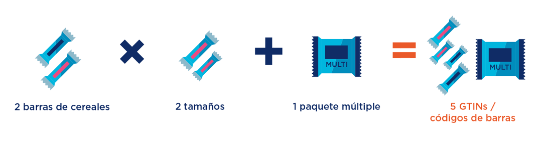 Los códigos de barras GS1 incluyen EAN-13, UPC-A, EAN-8, UPC-E, familia de símbolos GS1 DataBar, GS1-128, ITF-14, GS1 DataMatrix, GS1 QR Code y Composite Component.